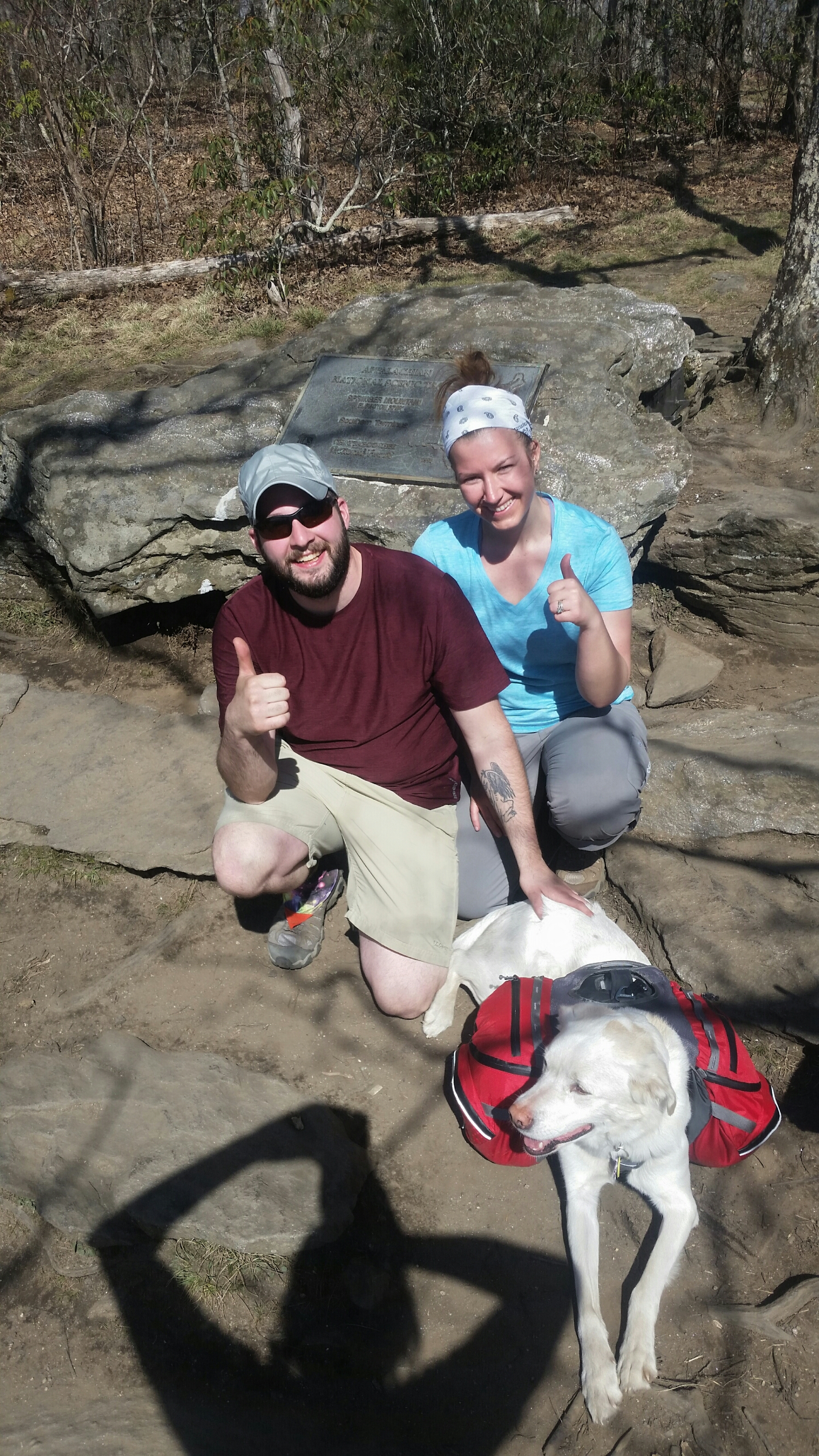 Turns out the hiker hostel was full. Our next step was to figure out where to go now and how-we ain’t got no car. Here we are, March 22nd walking around Gainesville, GA looking like some homeless folks with just our packs and our pup.